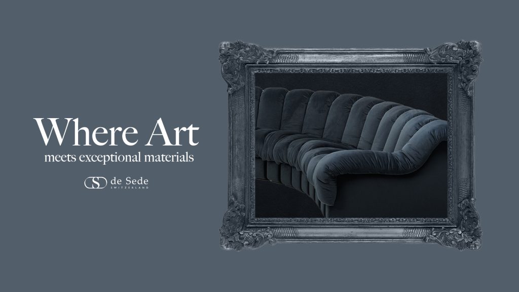 The campaign highlights the sofa's sculptural form, luxurious craftsmanship, and exceptional quality of materials chosen.
